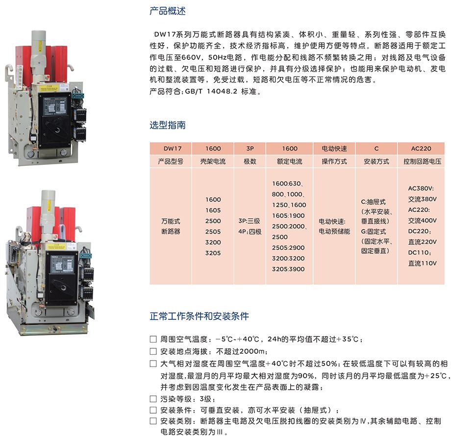 DW17系列萬能式斷路器產(chǎn)品說明書